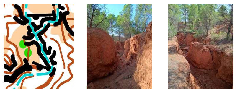 Comentarios del Trazador: En este paraje se puede apreciar cómo el agua ha degradado las montañas de arcilla creando paisajes sorprendentes y singulares, la primera toma de contacto con el terreno resulta impactante. Hay multitud de cortados y taludes de diferentes dimensiones, aproximadamente el 90% son de arcilla y el resto son de roca y muros de piedra muy antiguos realizados por el hombre para crear bancales. La vegetación se compone principalmente de bosque de pinos, el resto son encinas y sabinas. La vegetación baja, es escasa, se compone de espartos, tomillos y aliagas, por lo general el terreno está limpio, lo que nos facilitara correr más cómodamente. Todos los recorridos son algo más cortos de lo habitual, debido principalmente al desnivel acumulado, durante el recorrido hay que cruzar pequeños valles, en el centro de ellos se han formado barrancos producidos por la erosión del agua, algunos son de grandes dimensiones, se aconseja NO cruzar los barrancos saltando por encima ya que es muy peligroso, son anchos y de gran altura; Es necesario buscar las zonas de paso. Algunos corredores encontrarán cortados de gran altura en posición descendente y perpendicularmente en el sentido de carrera, éstos estarán marcados con cinta para prevenir del peligro. |
