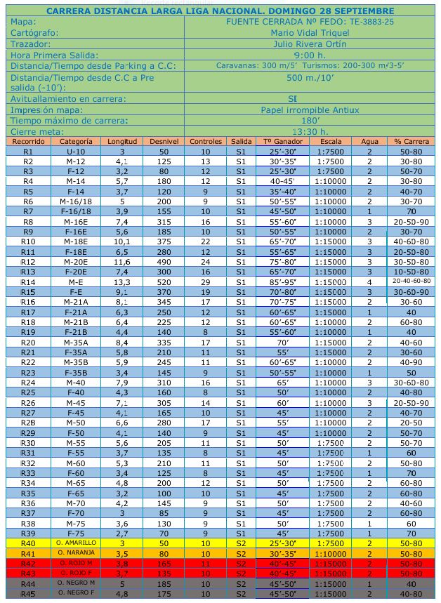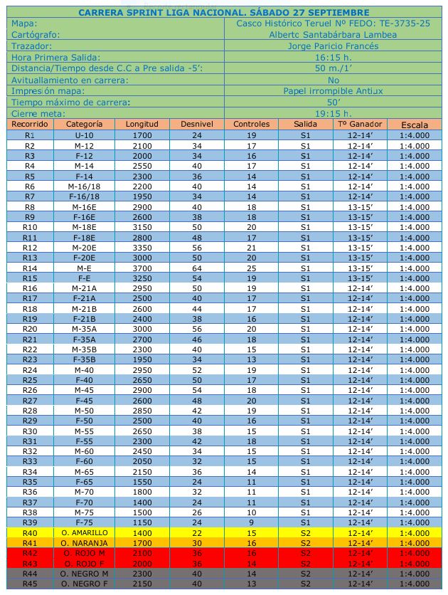 Comentarios del Trazador: La prueba sprint del Trofeo Aragón de Orientación se celebrará en el casco histórico de la ciudad de Teruel, teniendo el arte mudéjar como principal atractivo de la zona. Por lo general, se trata de un mapa de orientación sencillo de interpretar y sin un gran entramado de calles, con un desnivel suave que favorecerá tener unas carreras extremadamente rápidas. Debido a ello, la longitud de los recorridos es algo mayor a lo habitual. A pesar de la sencillez del mapa, se ha exprimido al máximo para ofrecer a los orientadores diferentes elecciones de ruta, combinadas con tramos cortos y técnicos donde la interpretación correcta del mapa y la descripción de controles hará ganar o perder unos segundos muy valiosos en una carrera sprint. Para aportar un mayor grado de dificultad a los recorridos, se han colocado vallas artificiales que cortarán el paso por completo en determinadas calles. Estas vallas artificiales vendrán marcadas con el símbolo 707 (paso prohibido) junto con el símbolo 709 (área prohibida). Físicamente, se representarán con una valla y cinta que corte toda la calle. Queda explícitamente prohibido cruzar estas vallas, así como cualquier otro elemento infranqueable, siendo este motivo de descalificación. En todos estos elementos habrá personal de la organización para registrar el número de dorsal de los corredores descalificados. Para finalizar la prueba, tendremos un seguimiento en directo con pantalla gigante en meta, cámaras en carrera, GPS, comentaristas… de las categorías M-Élite y F-Élite. Estos corredores, además de tener que estar previamente en la cuarentena, tendrán un paso de espectadores (baliza 200) por el centro de competición a mitad del recorrido. Os animamos a quedaros hasta el final y disfrutar del espectáculo que esperamos ofrecer. CARRERA SPRINT LIGA NACIONAL. SÁBADO 27 SEPTIEMBRE Mapa: Casco Histórico Teruel Nº FEDO: TE-3735-25 |